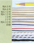 サ イ ズ 重 量 太 さ 長 さ 外 装 特A3号 375g 約 1mm 約570m 50巻 特A5号 375g 約1.2mm 約360m 50巻 特A8号 375g 約1.5mm 約260m 50巻 特A10号 375g 約1.8mm 約200m 50巻 特A12号 375g 約 2mm 約170m 50巻 色紐A10号 375g 約1.8mm 約200m 50巻 特A15号 560g 約 2mm 約200m 50巻 特A20号 560g 約2.5mm 約140m 50巻 特A30号 450g 約 3mm 約110m 50巻 特A40号 450g 約3.5mm 約80m 50巻 特A50号 450g 約 4mm 約60m 50巻 特A55号 450g 約 5mm 約50m 50巻
