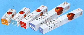 ストレッチフィルム ダイアラップスーパー ●環境にやさしい新素材焼却しても有毒な塩化水素ガスが発生しません。 ●水蒸気透過率が小さいので大切な商品の目減りや乾燥抑えます。 ダイアラップ小巻 ダイアラップ小巻規格表 品名 巾x巻長 ケース入数 ダイアラップ小巻 15cmx100m 40本 20cmx100m 30本 30cmx100m 45cmx50m 45cmx100m 20本