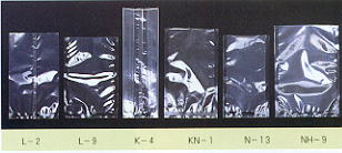 ●用途:珍味、生菓子、カステラ、削り節、とろろ昆布、油菓子の保存袋。ベンリーパックV 規格表 品番 厚みx幅x長さ 入数 L-1 #60 130x250 4,500 L-2 〃 140x240 4,000 L-3 〃 150X250 4,000 L-4 〃 160x270 4,000 L-5 〃 170x280 3,500 L-6 〃 180x300 3,500 L-7 〃 200x300 3,000 L-19 〃 210x330 2,000 L-20 〃 230x340 2,000 Kタイプガゼット ●KOP20/ドライ/LLDPE50