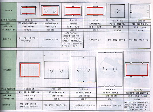 ハンドラベラー用ラベル <御注文にあたってのお願い> 糊のタイプ 弱粘着(一般用)・強粘着・冷凍用・再剥離用・耐水性があります。 サトーラベルの場合 タフ芯・紙芯の区別をして下さい。(サトー 純正ラベルの場合SPは,紙芯それ以外は、タフ芯になります。) アポロ、パイロンの場合 表巻、裏巻の区別をして下さい。 印刷色 サトー純正ラベルPB-1・SP・SAは赤青黒 PB-216・220は赤青緑橙 PB-3シリーズは赤青緑黒橙 TOP純正ラベルは赤黒青緑